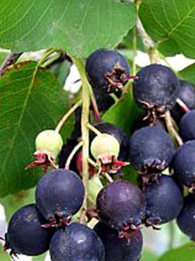 Blüte, Früchte und Blatt: Die vielen weißen sternförmigen Blüten überziehen das Gehölz von April bis Mai mit einem überreichen Blütenschleier. Aus diesen reifen später im Jahr ebenso viele blau bereifte, schwarze kugelige Früchte, welche direkt vom Strauch roh gegessen werden können. Sie schmecken süß-aromatisch und sind reich an Vitamin C. Geeignet sind Sie ebenfalls zur Verarbeitung von Marmelade, Kompott, Saft und Wein o.ä. Sehr zierend ist auch das grüne, breit-eiförmige und erlenartige Laub, welches schon im Austrieb kupferrote Blätter zeigt und später im Jahr mit einer auffallend leuchtend gelb-orangen bis roten Herbstfärbung fasziniert.