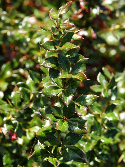 | Blatt, Holz: | Blatt immergrün, eiförmig, glänzend. Im Herbst sind einzelne Blätter scharlachrot. Braungelbe Triebe mit kleinen Warzen. Dreiteilige, 1 – 2 cm lange Dornen. Immergrüne Pflanze. |