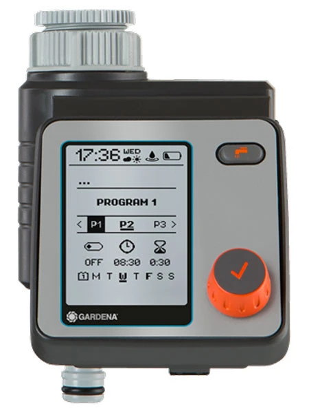 Mit der GARDENA Bewässerungssteuerung Master lässt sich die Bewässerung besonders flexibel und individuell planen. Bis zu sechs unterschiedliche und unabhängige Zeitpläne können erstellt werden. Die Steuerung ist batteriebetrieben, wird direkt an den Wasserhahn angeschlossen und lässt sich leicht durch nur einen Dreh- und Drückschalter zur Auswahl der Daten und zur Bestätigung bedienen. Ein gut lesbares, vollgraphisches LC-Display zeigt alle Einstellungen auf einen Blick an. Das Menü ist in 10 Sprachen wählbar. Die wetterbeständige Bedieneinheit ist abnehmbar. Die zentrale Anpassung der Bewässerungsdauer oder ein Pausieren aller Bewässerungen bei einer Schlechtwetterphase ist leicht möglich. Das Gerät eignet sich ideal zur Steuerung des GARDENA Wasserverteiler automatic. Die Bewässerungssteuerung Master kann auch in Kombination mit einem GARDENA Bodenfeuchtesensor eingesetzt werden.