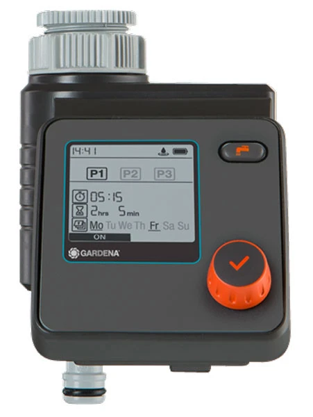 Mit der GARDENA Bewässerungssteuerung Select lässt sich die Bewässerung flexibel und individuell planen. Bis zu drei unterschiedliche und unabhängige Zeitpläne können erstellt werden. Die Steuerung ist batteriebetrieben, wird direkt an den Wasserhahn angeschlossen und lässt sich leicht durch nur einen Dreh- und Drückschalter zur Auswahl der Daten und zur Bestätigung bedienen. Ein gut lesbares LC-Display zeigt alle Einstellungen auf einen Blick an. Die wetterbeständige Bedieneinheit ist abnehmbar. Die Bewässerungssteuerung Select kann in Kombination mit einem GARDENA Bodenfeuchtesensor eingesetzt werden.